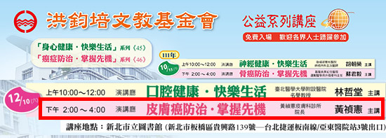 講座主題:皮膚癌防治,掌握先機