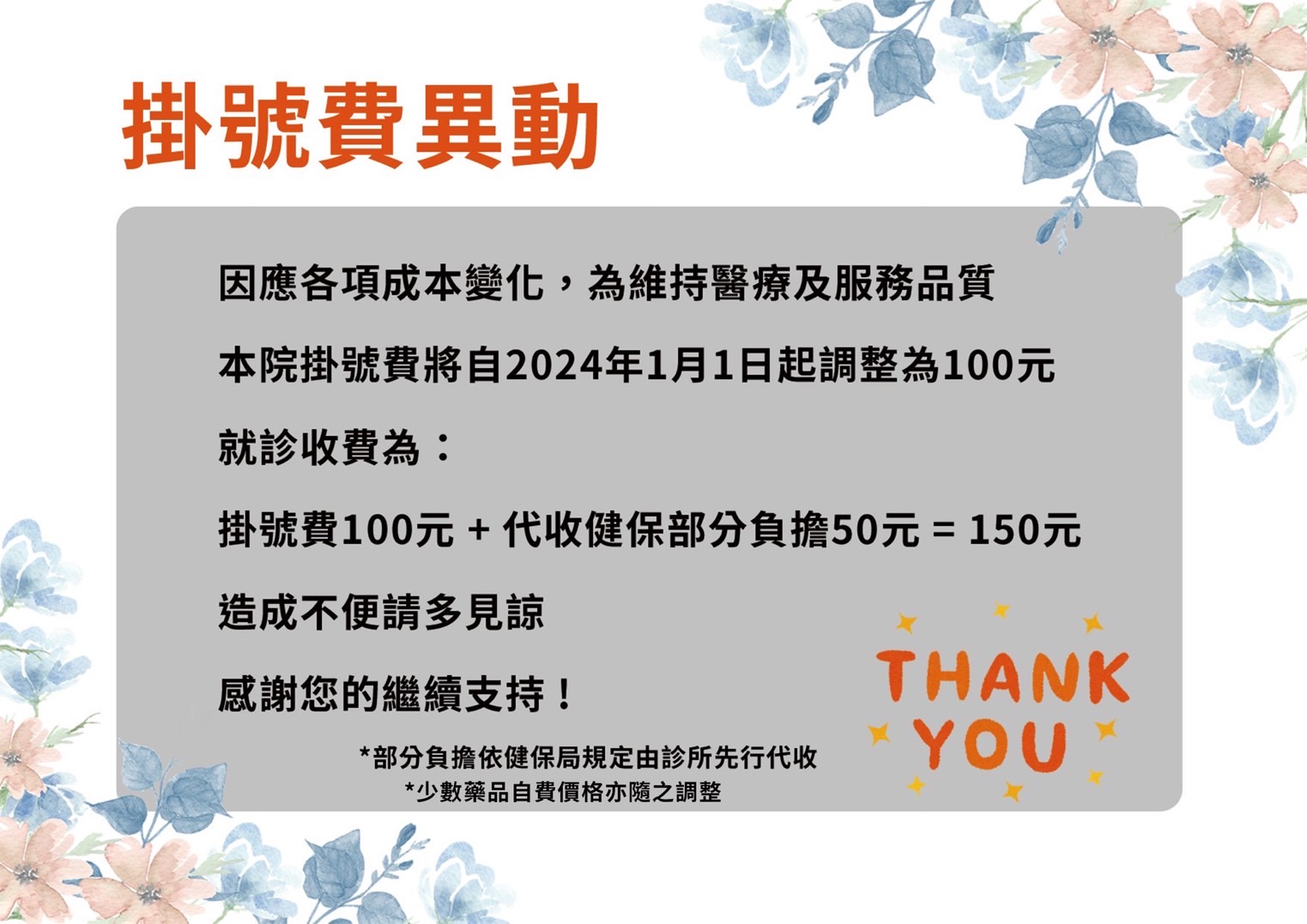 黃禎憲2024年掛號費異動公告