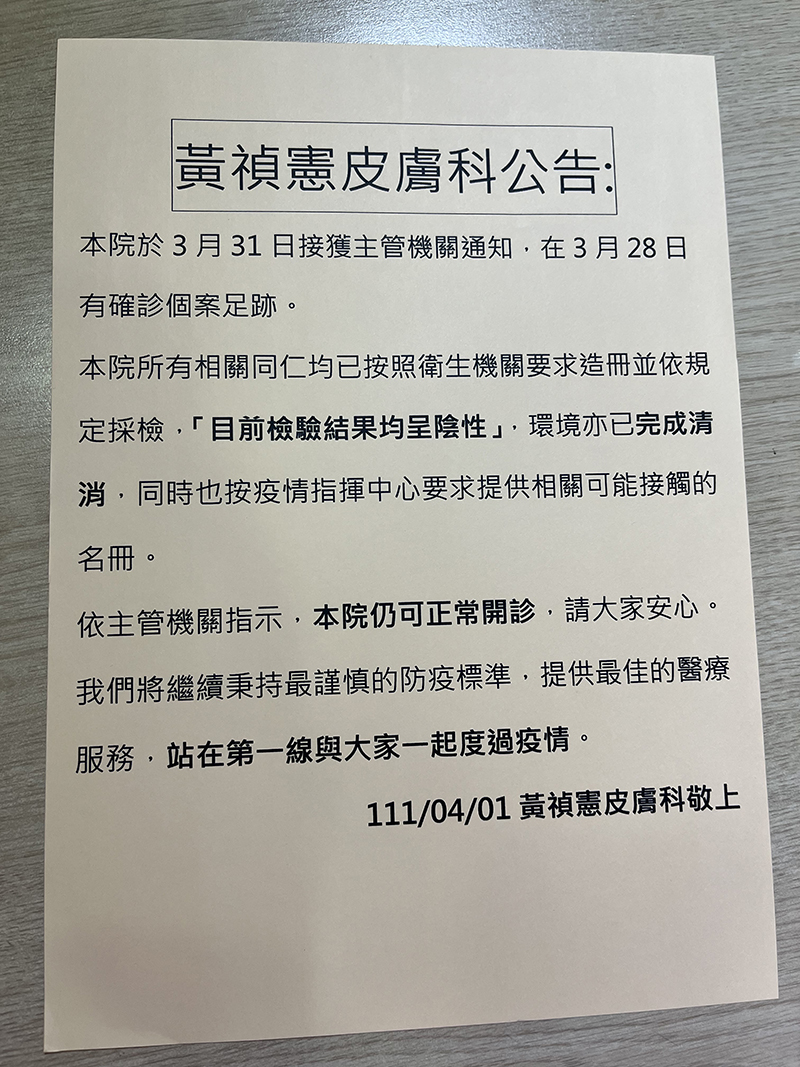 黃禎憲皮膚科公告